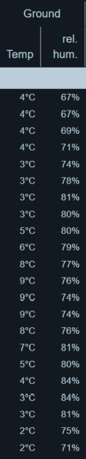 Vervolgens staat er ook nog een kolom met de temperaturen vanaf de grond.