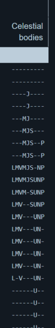 Aan de linker kant kun je zien wanneer de zon en maan op komt of wanneer het donker wordt. De cijfers geven de tijden aan. Ook wordt de fase van de maan weergegeven. (helemaal links)