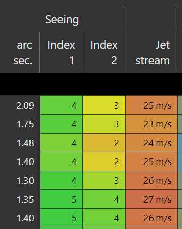 Na dit verteld te hebben kun je dus zien dat je op deze dag een redelijk goede kans hebt om de sterren en planeten te zien maar dat de seeing niet helemaal perfect zal zijn door de windsnelheid.