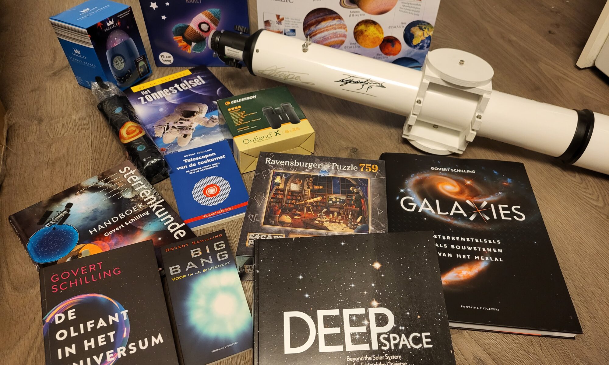 Na het verloten van de telescoop was er nog een tweede prijs te vergeven: een verrekijker, ter beschikking gesteld door Ganymedes. Uiteraard ook hier dank voor het belangeloos leveren van deze prijs, die zeker ook dankbaar in ontvangst genomen werd!