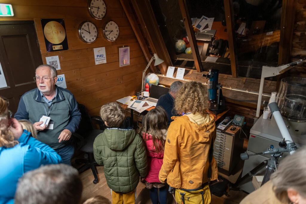 Op de zolder werd er van alles verteld door de vrijwilligers van de sterrenwacht over onder andere meteorieten, spectroscopie, radiotelescopen en kon er gecommuniceerd worden door middel van morsecode. Ondanks de bewolking was er ook plek in de koepel waar meer uitleg gegeven kon worden over telescopen en waarnemen.