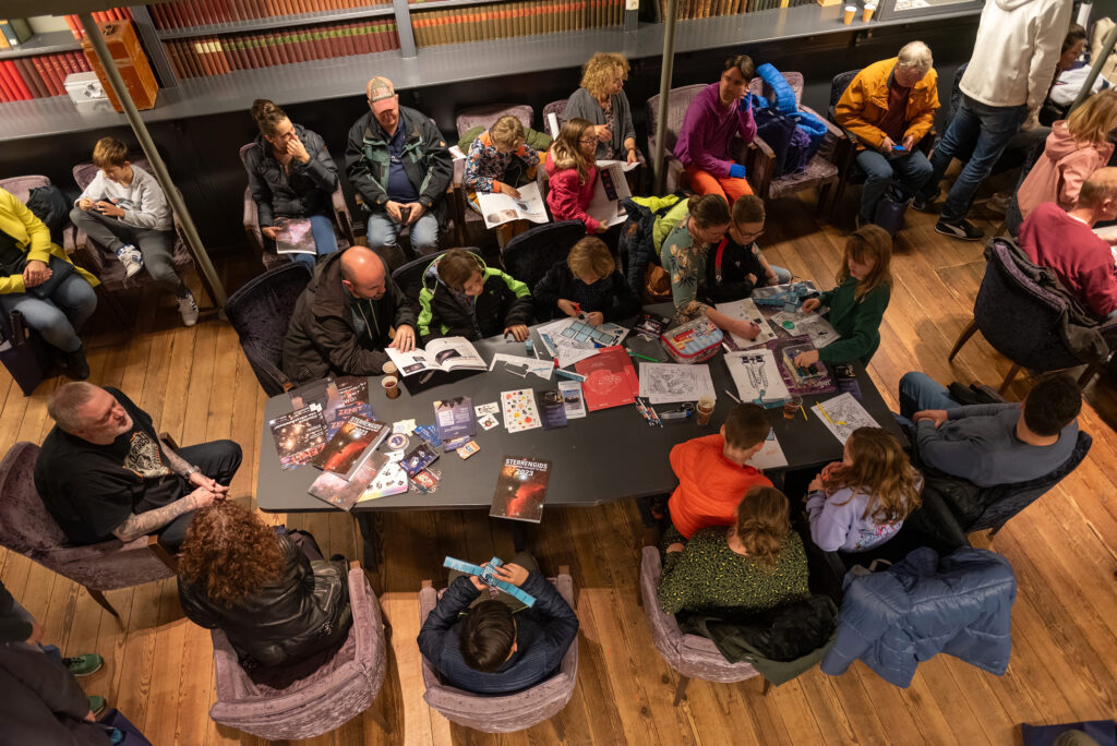 Na de loting kon er nog volop met de medewerkers van Tivoli en Sterrenkijken.nu gesproken worden. Ook de zolder van de sterrenwacht was nog in trek, evenals het nodige knutselwerk van JWG. Hier en daar werd nog druk nagepraat over allerlei astronomische zaken, waar de ruimte in de bibliotheek zich dan ook uitstekend voor leende.